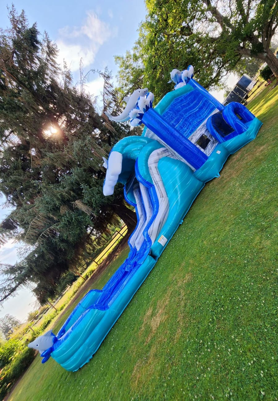 Don't miss out on the opportunity to create a memorable and exciting experience for your little ones. Contact us today to book the XL-Dolphin Dual Water Slide Combo and make your next event a splash!