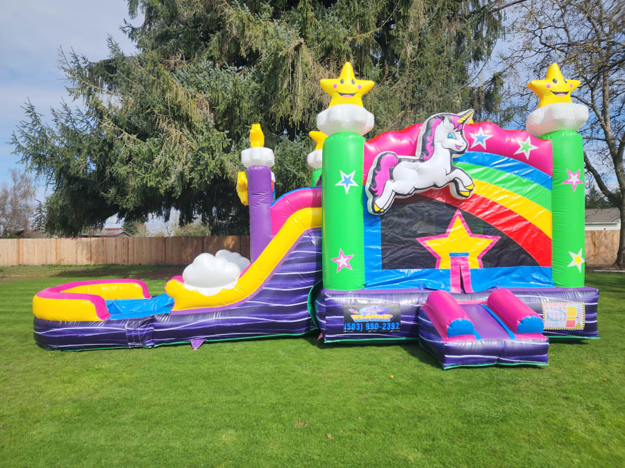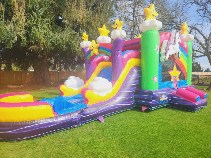 Don't miss out on the opportunity to bring the magic of the Rainbow Unicorn Bounce Water Slide to your next event. Contact us now to reserve your rental and let the fun begin!