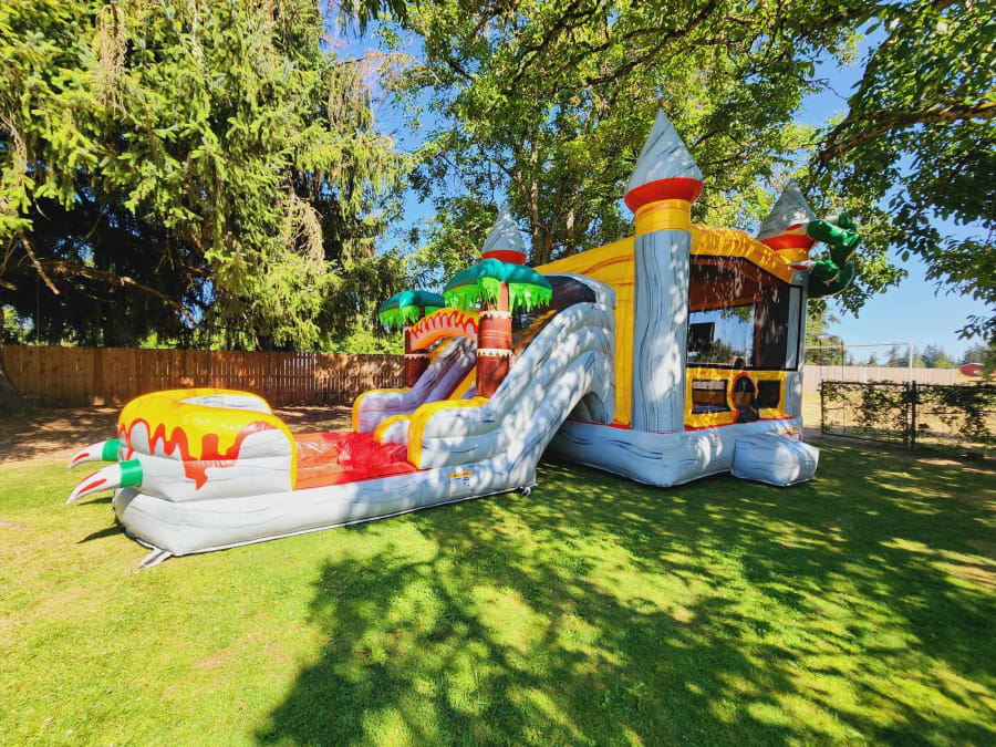 🚚 Delivery to Salem and Surrounding Areas: We offer convenient delivery services to Salem and the surrounding areas, making it easy for you to enjoy the T-rex Bounce Water Slide Combo at your preferred location. Simply book your rental, and we'll handle the rest!