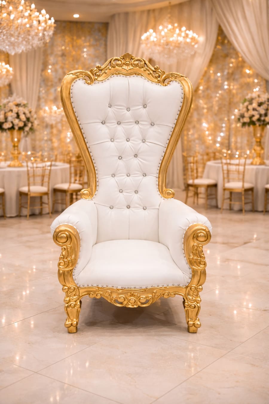 Make your event truly extraordinary with our luxury gold throne chair rental service. Contact us today to reserve your throne chairs and add a touch of elegance and sophistication to your special occasion.