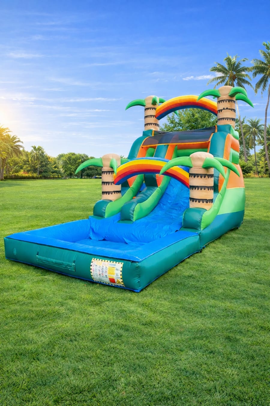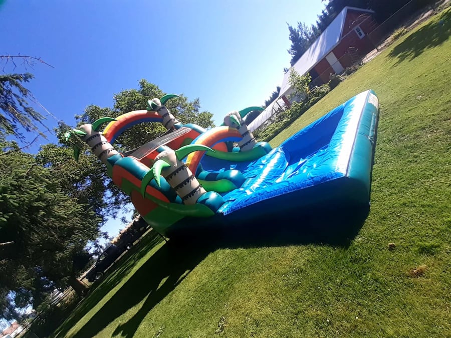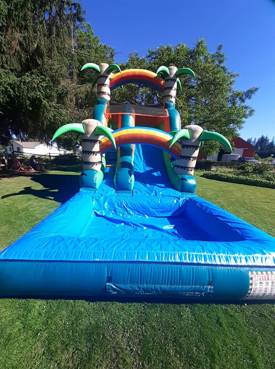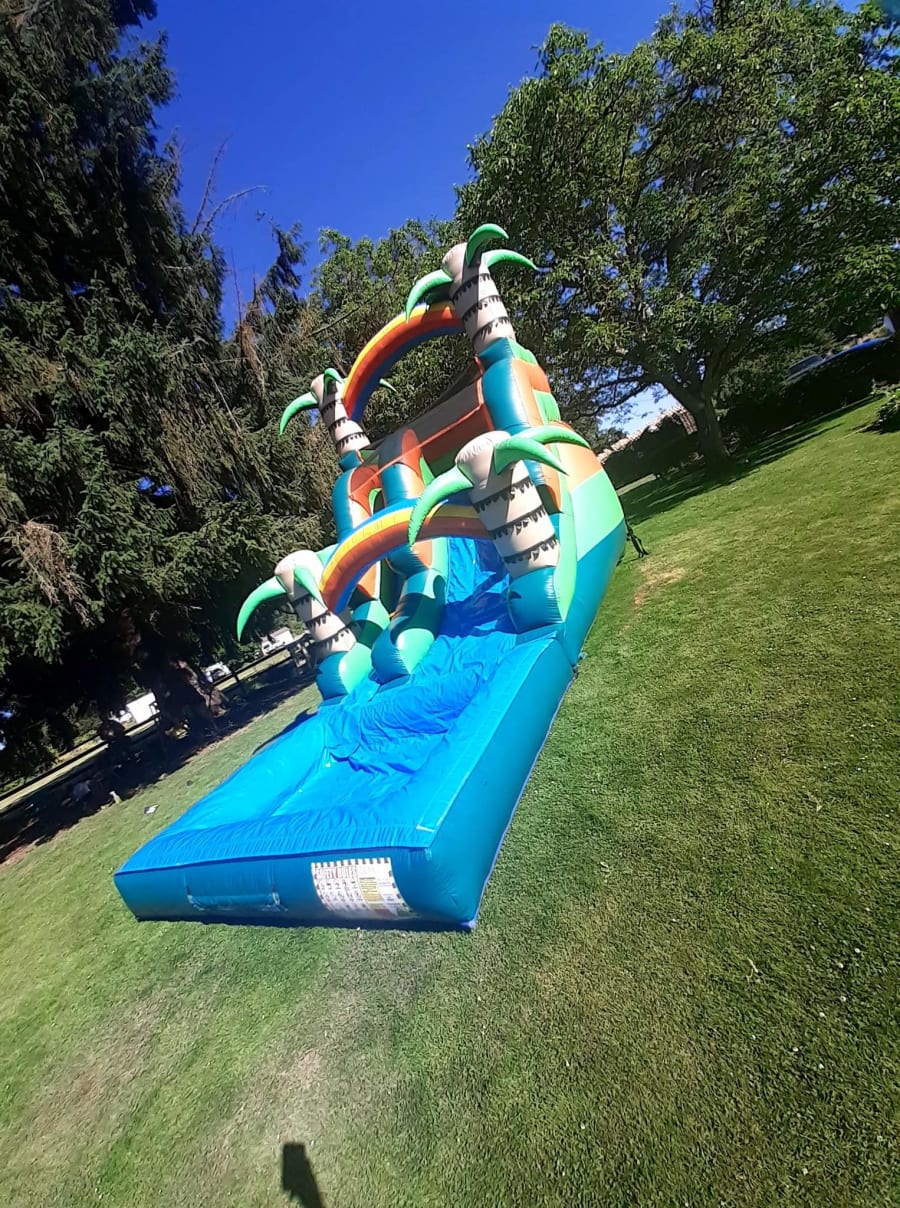 🎉 Make your next event a memorable one with our Palm Tree Water Slide. Get ready to slide, splash, and create lasting memories with your loved ones. Don't miss out on the ultimate summer experience!