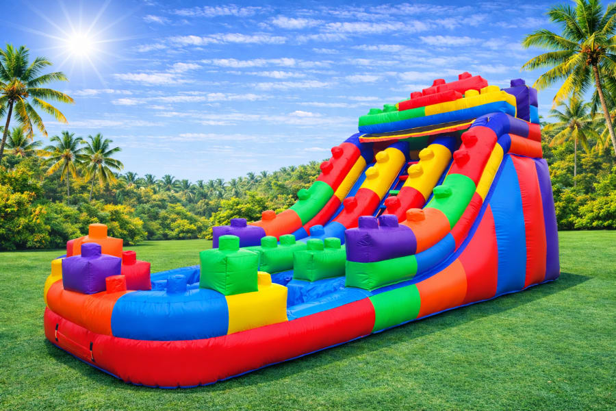 Whether you're hosting a birthday party, a family reunion, or a corporate event, our Dual Lego Waterslide is guaranteed to be a hit. It provides endless fun and excitement, creating memories that will last a lifetime. So why wait? Book our Dual Lego Waterslide today and get ready to make a splash at your next event!