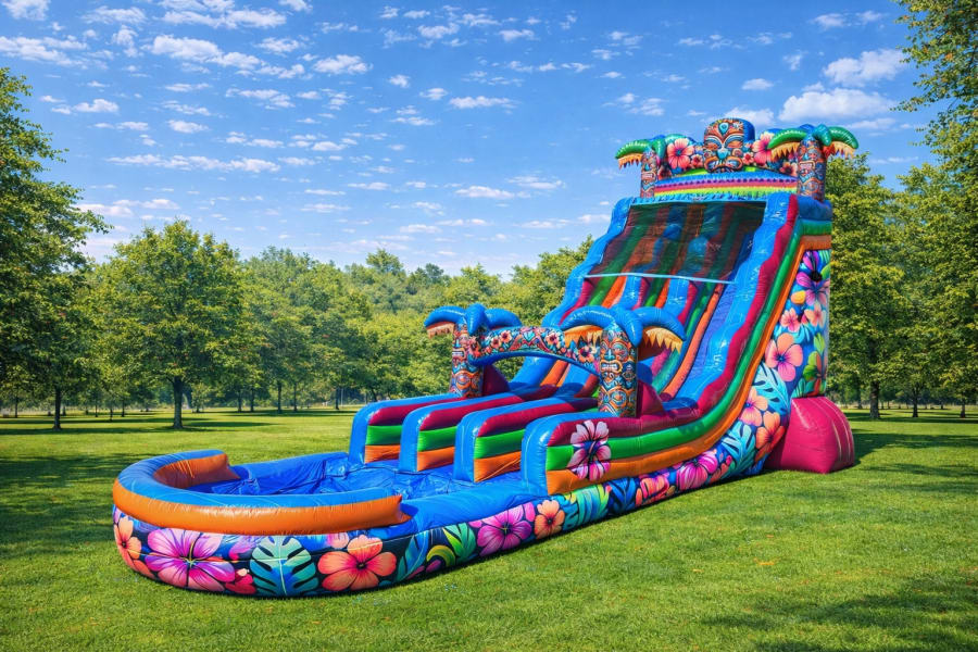Reserve the Mega Aloha Dual Water Slide now. We deliver and service events across Salem and surrounding areas. Limited availability during peak season. Call or book online to lock your date. Make your next event unforgettable with a splash! 🌺