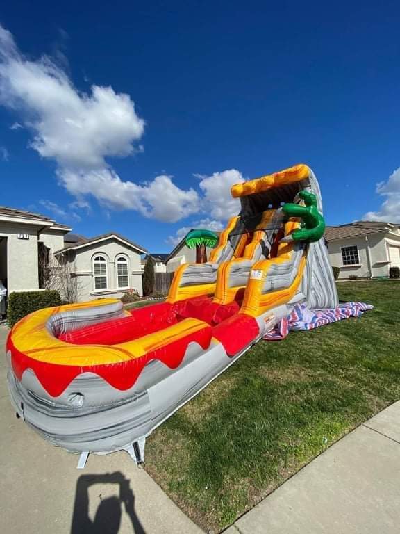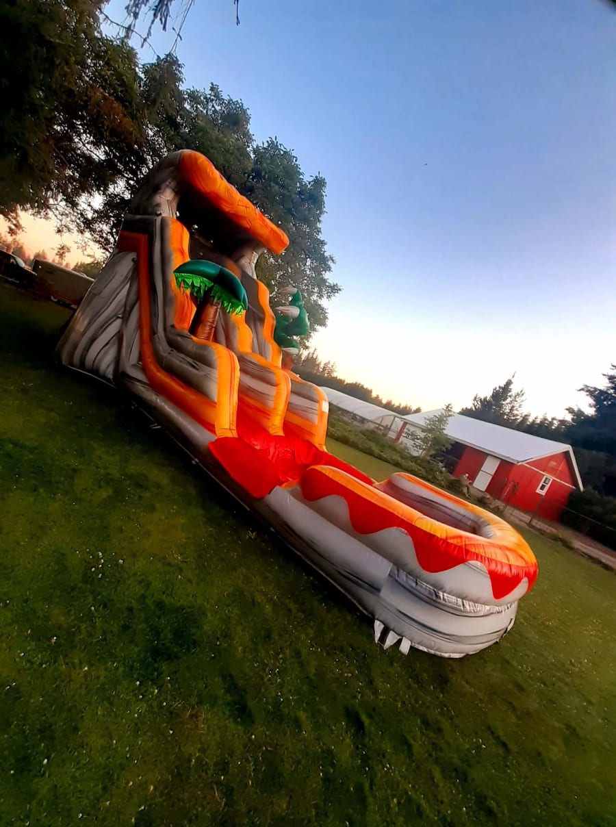 Step into the prehistoric world and embark on an adventure like no other. The T-Rex Water Slide stands tall at 21 feet, towering over the crowd and capturing everyone's attention. Its vibrant colors and lifelike T-Rex theme create a captivating atmosphere that will transport your guests to a land of excitement and imagination.